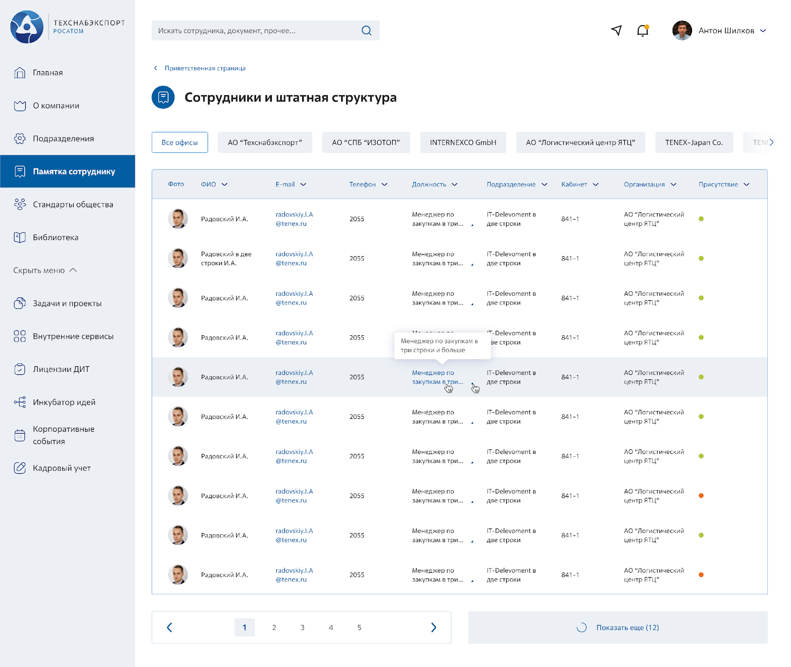 Раздел «О компании». Там пользователь может найти корпоративную презентацию, ознакомиться с организационной структурой, получить контактную информацию и перейти в другие внутренние подразделы.